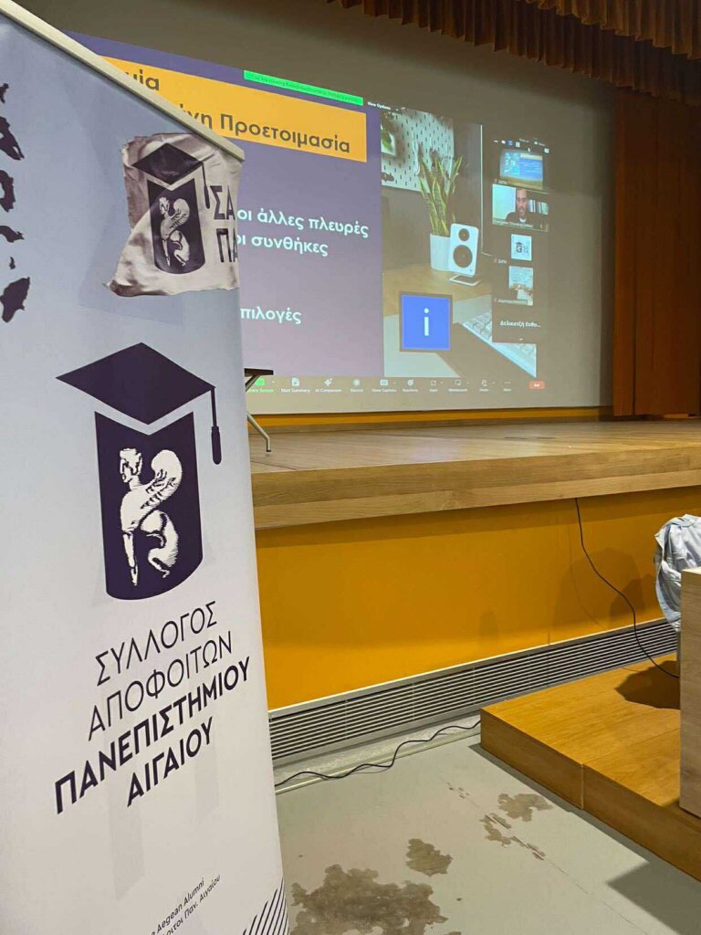 Με επιτυχία ολοκληρώθηκε στις 31 Μαΐου η δεύτερη και τελευταία ημέρα της Ημέρας Καριέρας που διοργάνωσε ο Σύλλογος Αποφοίτων Πανεπιστημίου Αιγαίου (ΣΑΠΑ), σε συνεργασία με το Τμήμα Επιστήμης Τροφίμων και Διατροφής και τον Φοιτητικό Σύλλογο του Τμήματος.
