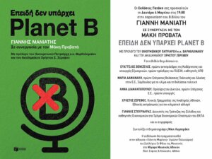 Ο Σύλλογος Αποφοίτων του Πανεπιστημίου Αιγαίου συμμετείχε στην παρουσίαση του βιβλίου του Γιάννη Μανιάτη σε συνεργασία με τον Μάκη Προβατά με θέμα «Επειδή δεν υπάρχει planet B» που πραγματοποιήθηκε τη Δευτέρα 4 Μαρτίου στις 19:00 στο Μέγαρο Μουσικής.