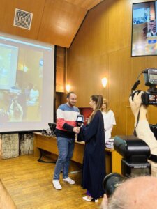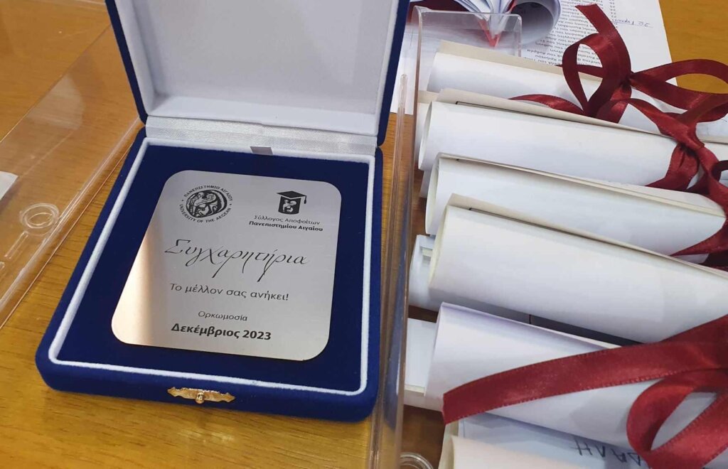 Τιμητικές πλακέτες προσέφερε εκ μέρους του ΣΑΠΑ στον πρώτο σε βαθμολογία στο προπτυχιακό και στα τρία τμήματα ο Σιδερής Κλούβας, Αρμόδιος για την Πανεπιστημιακή Μονάδα της Χίου.